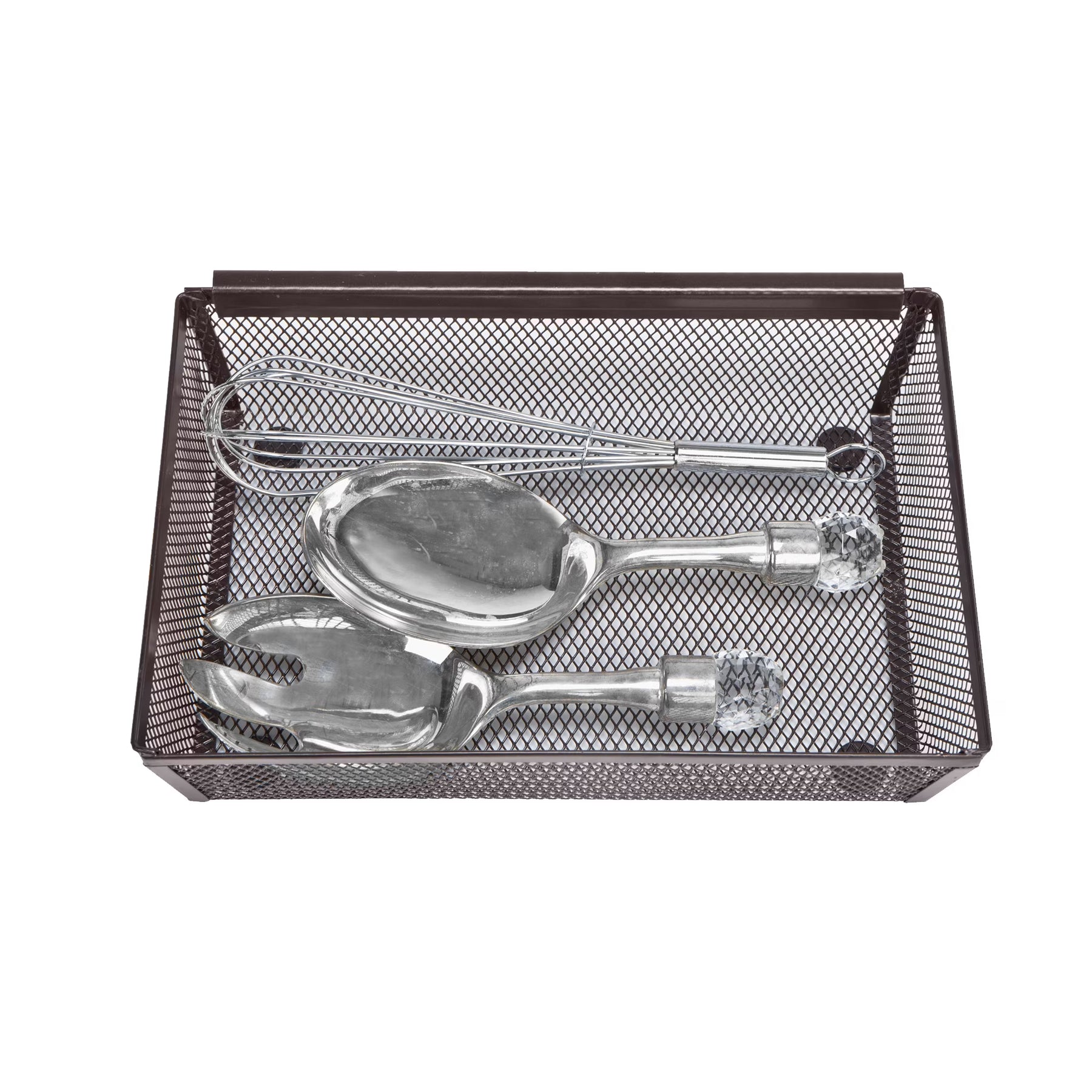 The design is made from sturdy steel mesh and is great for flatware, kitchen utensils, and more!