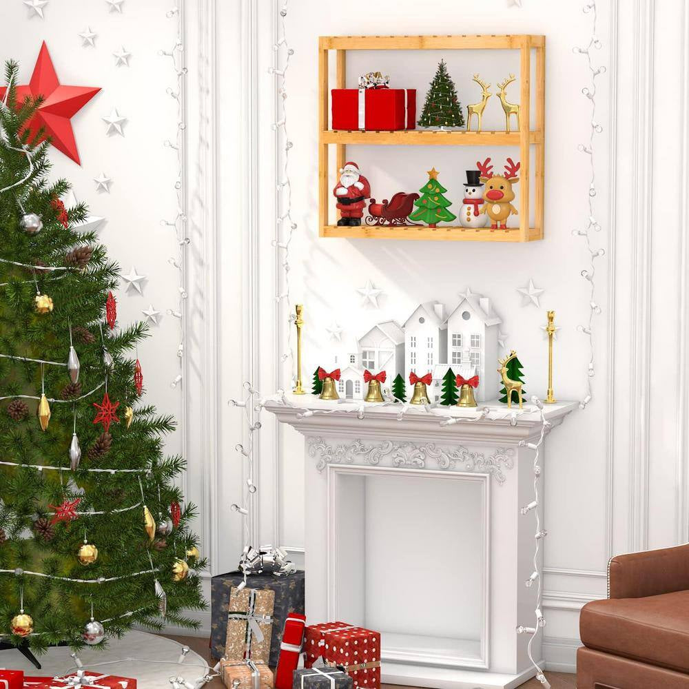 The 3-tier shelves and 5 vertical positions can meet your special storage need. Special design can prevent your stuff from falling down. The wall mount storage shelf can keep your room organized wihout taking up too much space. Say bye to your messy counter top.With simple design and classic color, the storage wall shelf will add a pop of glitz to your decor. It's versatile to use in your bathroom, bedroom, living room or kitchen to organize your stuffs.